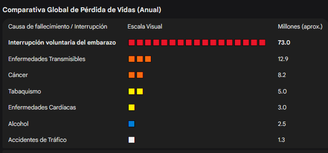 La aritmética del vacíoPara comprender la magnitud de este fenómeno, debemos mirar las cifras sin los velos de la costumbre. Las guerras, con su estruendo mediático; los accidentes de tráfico y las pandemias que detienen al mundo, palidecen en volumen absoluto frente a la interrupción voluntaria del embarazo.